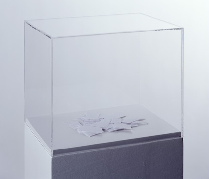 Work No. 309 A sheet of paper torn up 2003 US letter paper, lid, plinth Lid 11 x 8.5 in / 27.9 x 21.6 cm; plinth height variable