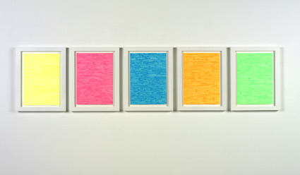 Work No. 436 2005 Highlighter pen on paper 5 parts, each 11.7 x 8.2 in / 29.7 x 21 cm
