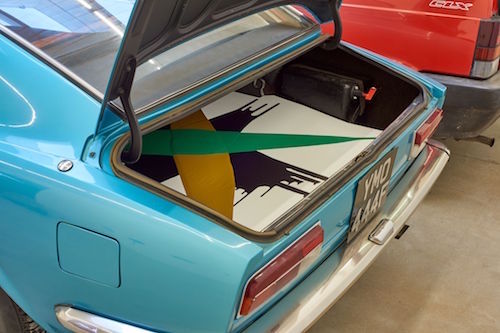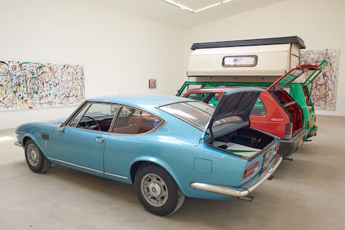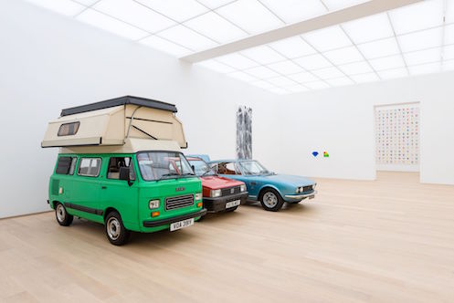 Work No. 2693 2016 Fiat camper van, Fiat Panda, Fiat Dino; three paintings (fitted to floors of trunks) Acrylic on canvas 142 7/8 x 173 1/4 x 210 5/8 in / 363 x 440 x 535 cm