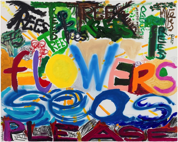 Work No. 3113 TREES flOWERS seas PLEASE 2018 Acrylic, charcoal, graphite and oil on canvas 152.7 x 122 x 2 cm / 60 x 48 x 3/4 in